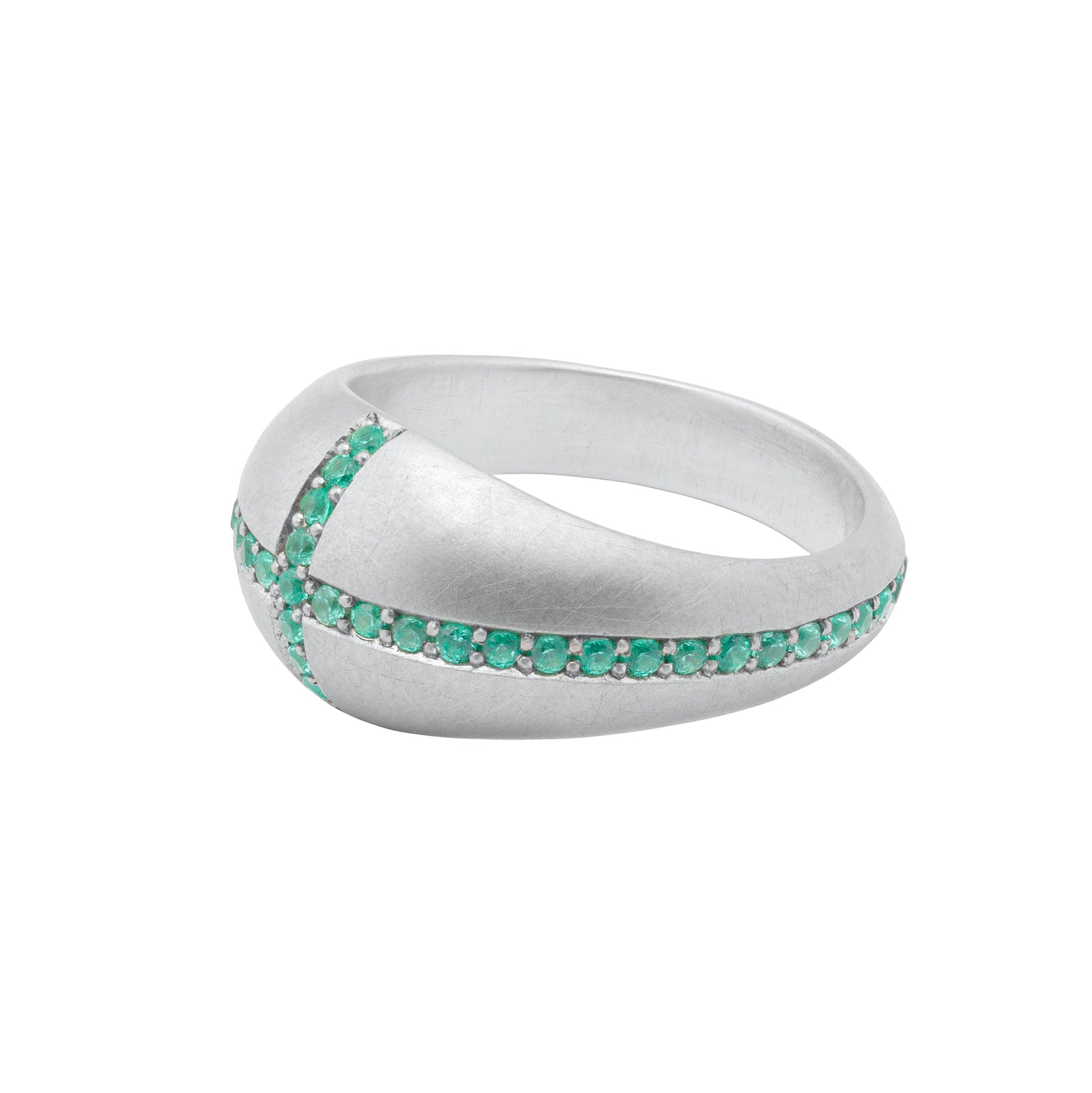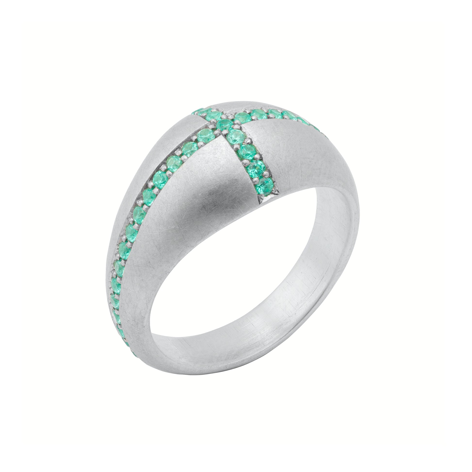 Like deep lines carved into rock by blue ice over hundreds of thousands of years, a cross of Paraiba garnet cuts through silver. With hand set stones along the full circumference of the piece.